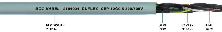 • 由于特殊的電纜結(jié)構(gòu),這種電纜ZUI大的特點(diǎn)就是具有良好的柔韌性。耐彎曲、耐折、耐磨、耐油,用于連續(xù)往復(fù)運(yùn)動(dòng)下的移動(dòng)使用。